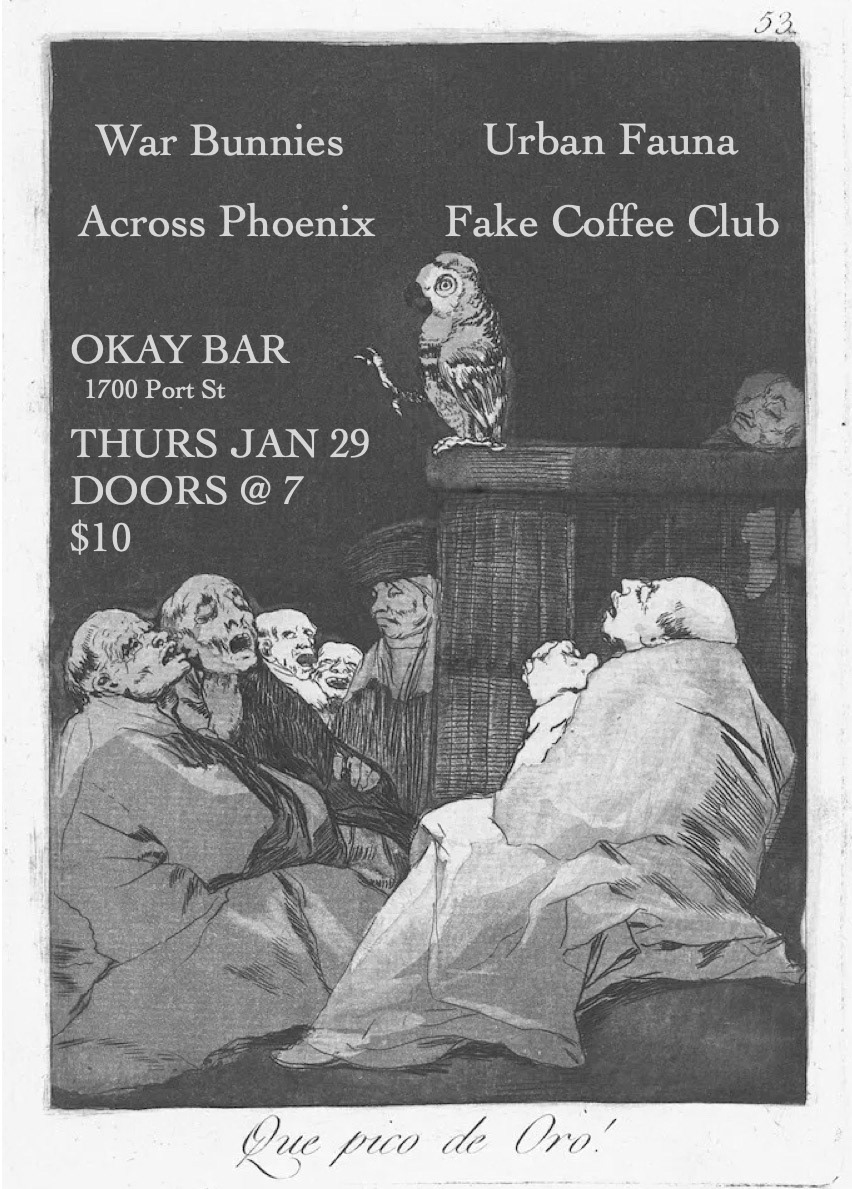Jan 16th - Banks St Bar w/Buddah Bellies Jan 23rd - Jimmy’s w/ Vienna Notarianni, Noa and the handgrenades and Makena'aloha Jan 29th - Okay bar w/ Urban Fauna Feb 1st - Gasa Gasa w/Noa and the handgrenades and Just Kidding Feb 14th - Gasa Gasa w/ Hotel Burgundy and Dallas Wax March 13th - The Crypt w/ The Pause and Chess